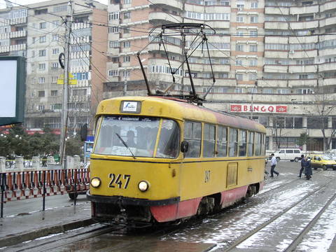 Vehicule circuland pe linia 2 barat in Iasi.